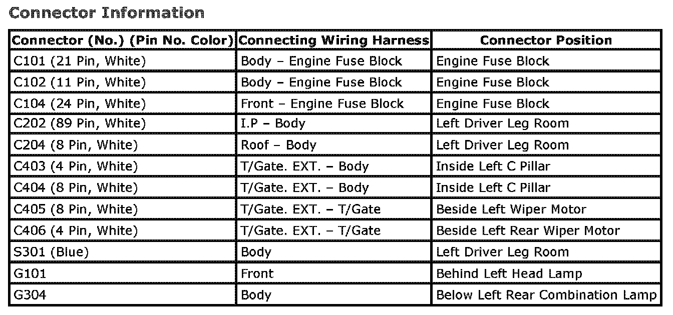 CONNECTOR IDENTIFICATION SYMBOL AND PIN NUMBER POSITION