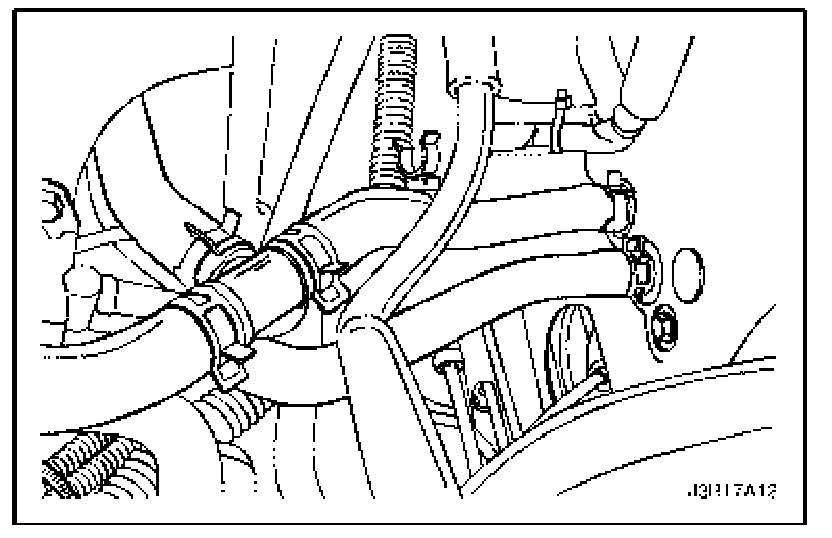 7. Slide the heater hose clamps into position.