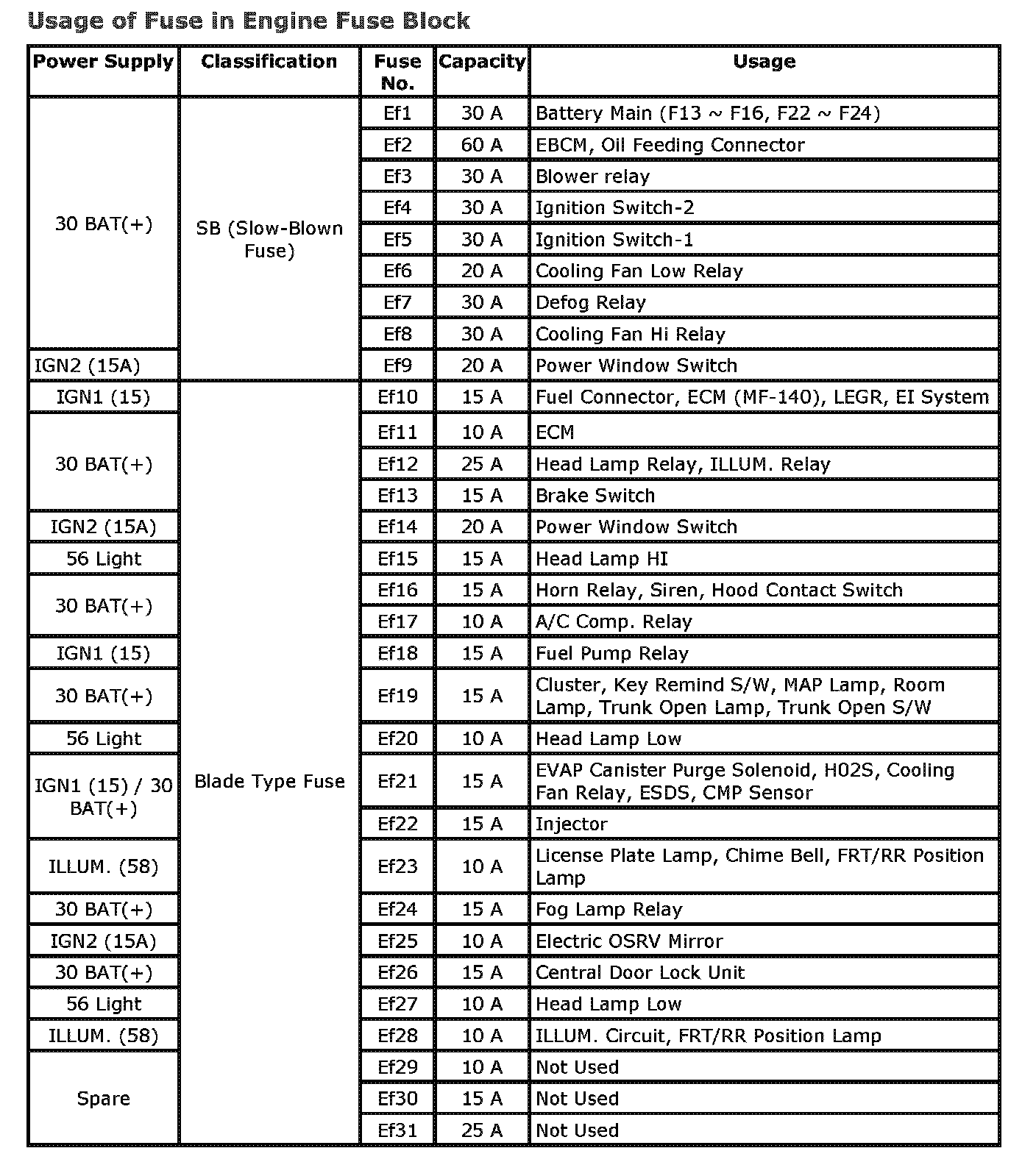 Usage of Fuse in Engine Fuse Block: