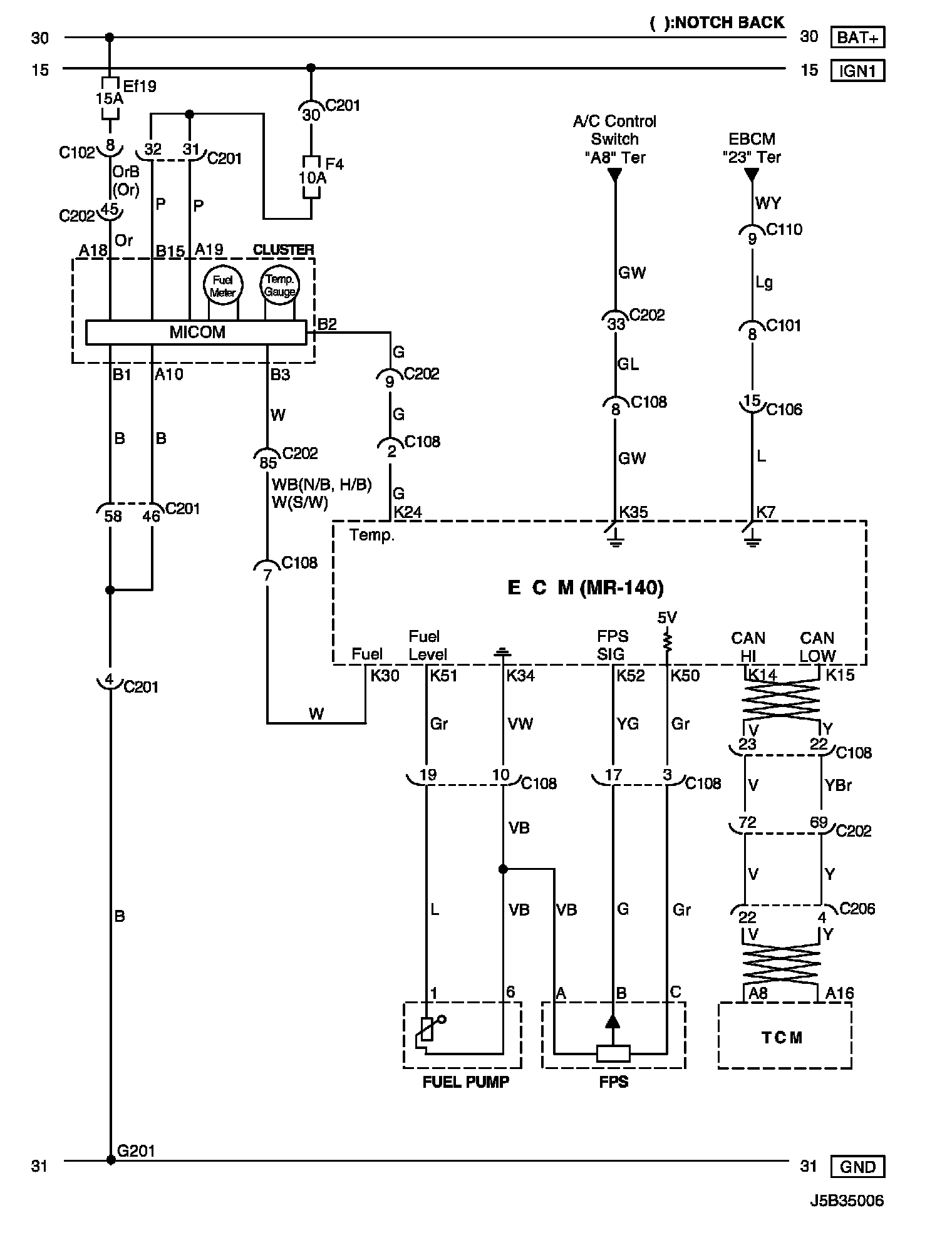 Cluster, Fuel Pump and TCM Circuit