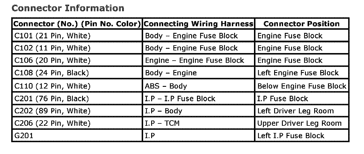 CONNECTOR INFORMATION
