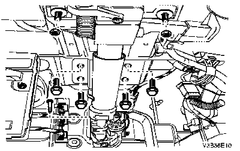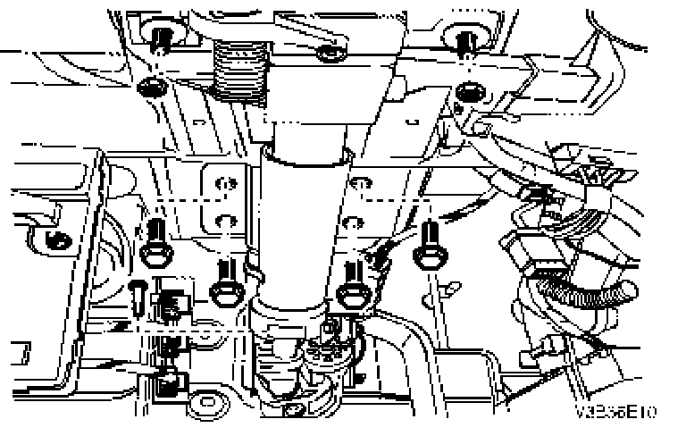 8. Remove the steering column jacket assembly securing bolts and nuts.