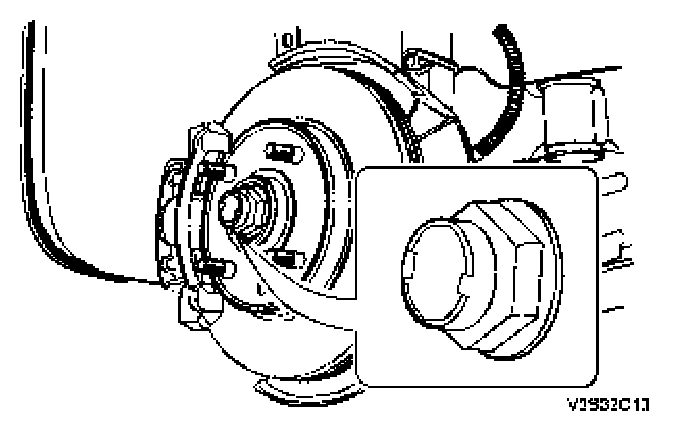 Tighten: Tighten the caulking nut onto the axle shaft to 320 Nm (236 ft. lbs.).