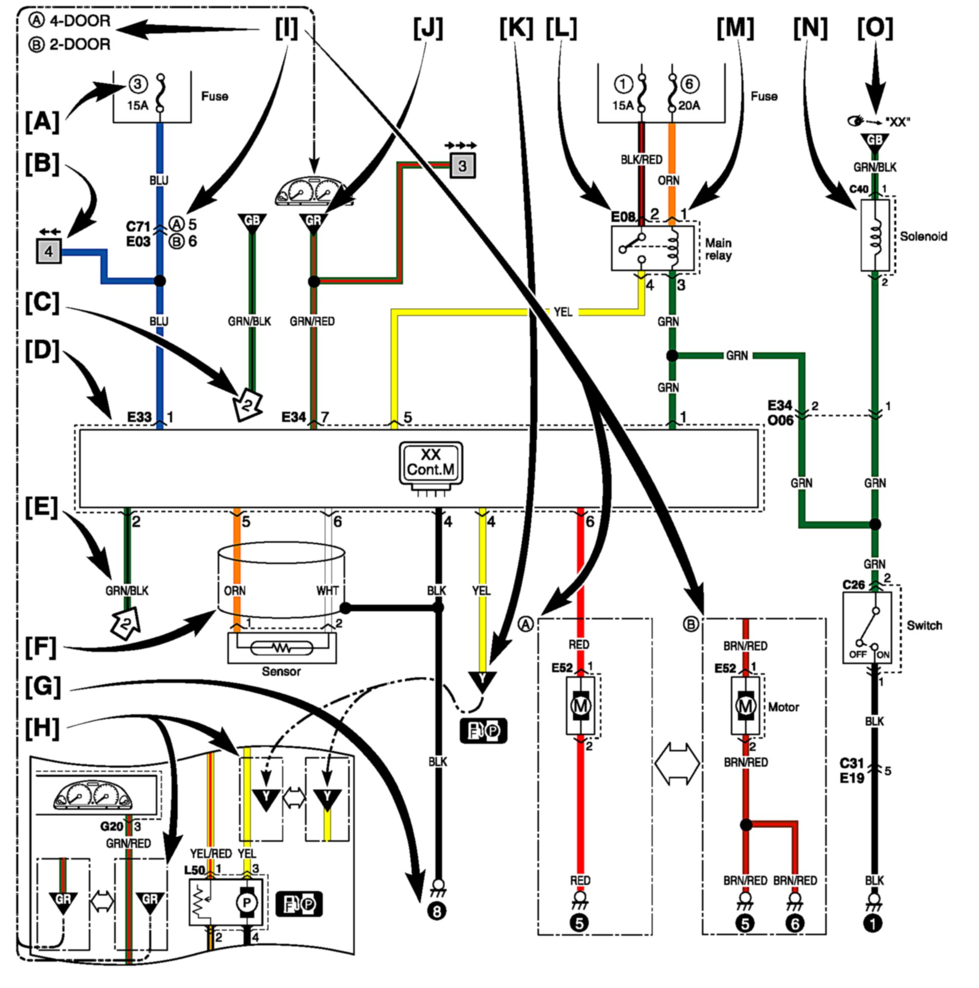 NOTE: The circuit continues to the same symbol with opposite direction within the page.
