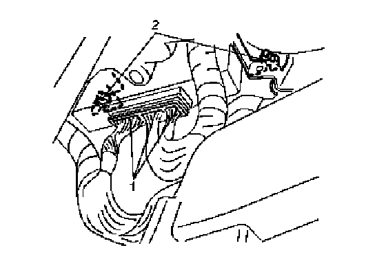 4. Disconnect connectors (1) from ECM while releasing connectors lock.