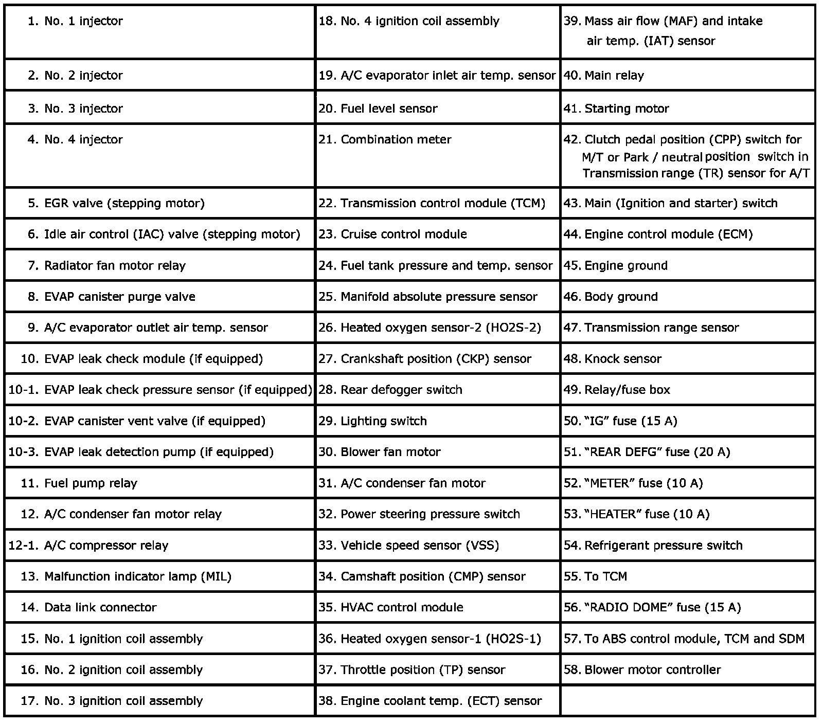 Electronic Control System Components Location Part 1: