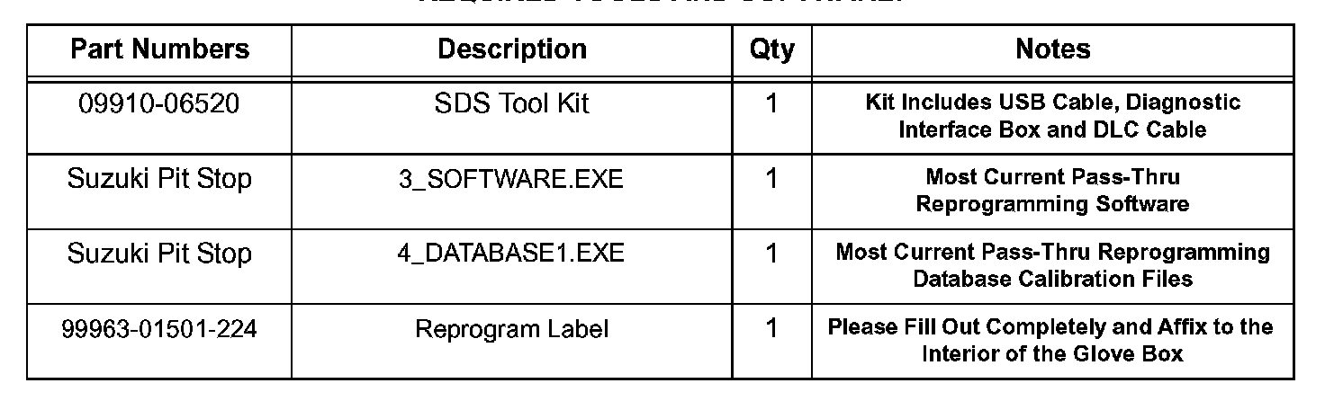 3. Following the procedure outlined in the Suzuki Pass-Thru Reprogramming Tool Operator's Manual, download and install the Pass-Thru Reprogramming Software "3_SOFTWARE.EXE" if it is not already installed on your PC.
