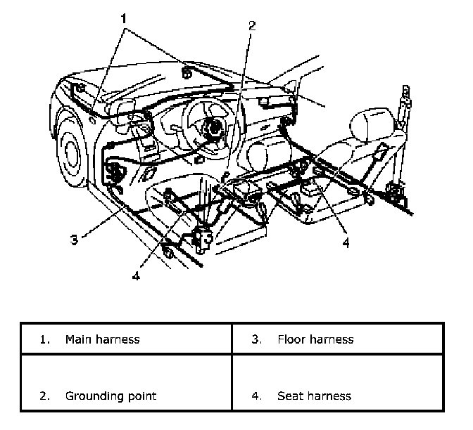 - Air bag wire harness in main harness, instrument panel harness, floor harness and seat harness.