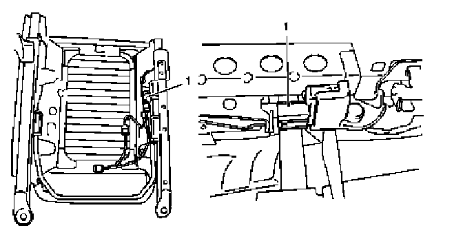 - Check sensor (1), sensor bracket and seat adjuster for damage bend or rust.