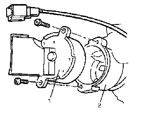 7. Remove ignition switch (1) from key cylinder (2).