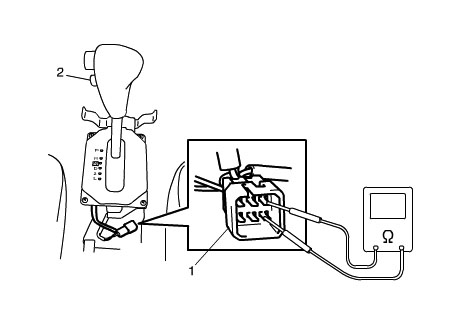 Check continuity between O/D off switch (2) terminals. If check result is not as satisfied, replace switch.