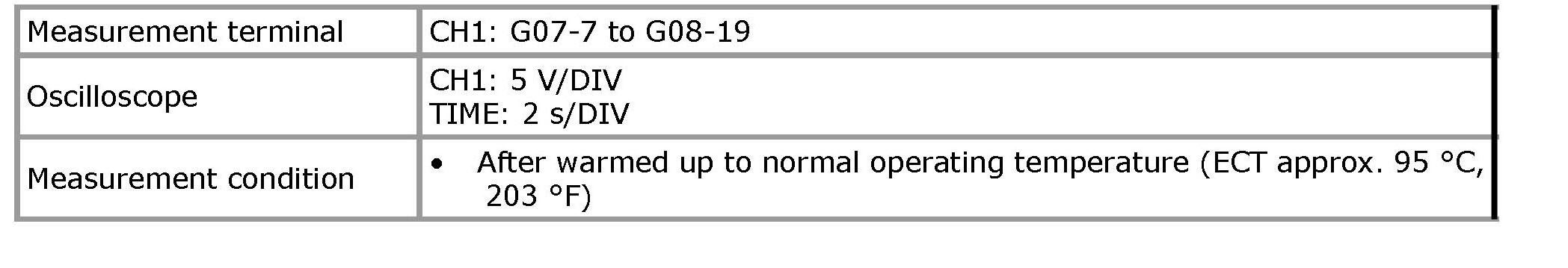 NOTE: As each terminal voltage is affected by battery voltage, confirm that it is 11 V or more when ignition switch is ON.