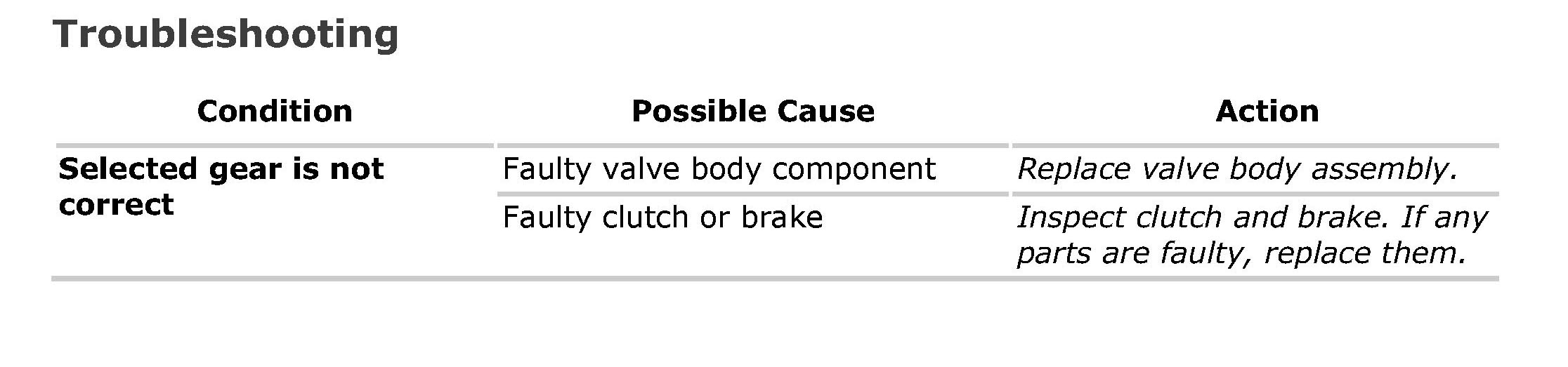 Manual Road TestThis test checks the gears being used in "L", "2" or "D" range when driven with unoperated gear shift control system. Test drive vehicle on a level road.