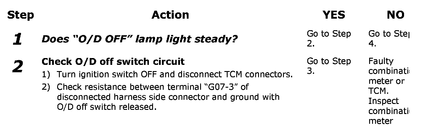"O/D OFF" Lamp Circuit CheckWiring Diagram