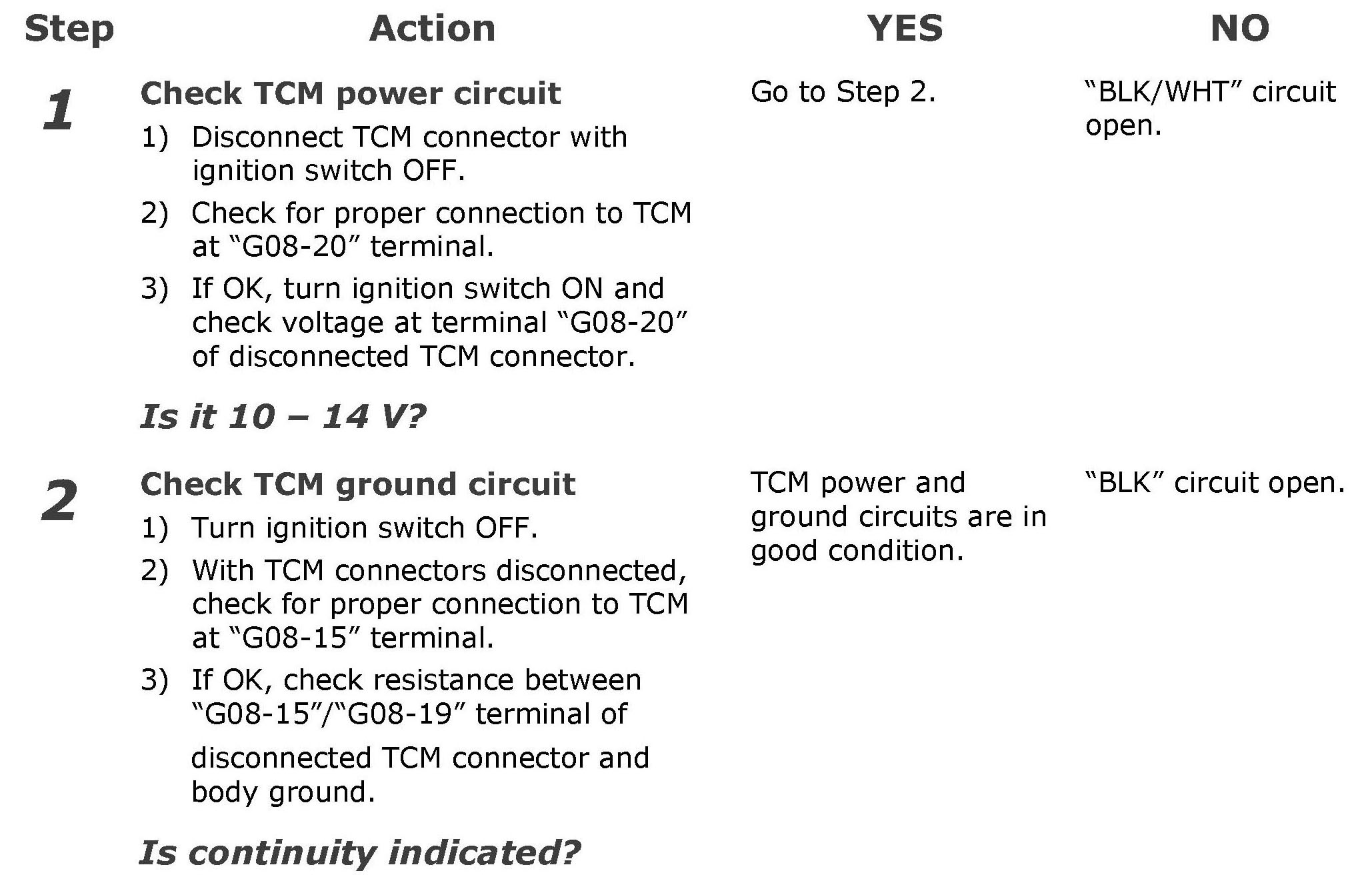 TCM Power and Ground Circuit Check