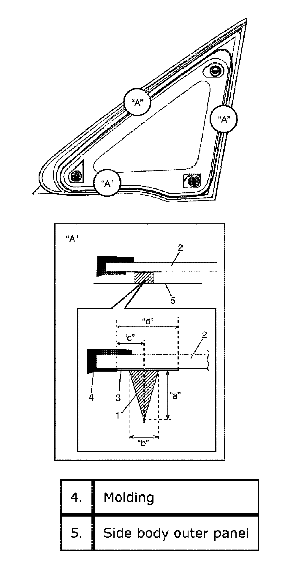 Adhesive amount specification and position for front pillar window:
