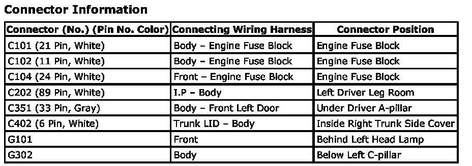 CONNECTOR IDENTIFICATION SYMBOL AND PIN NUMBER POSITION