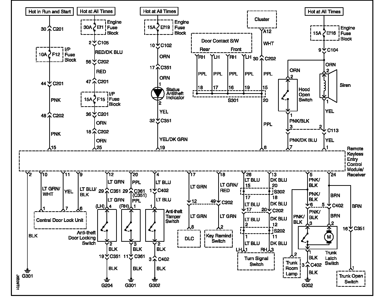 Remote Keyless Entry and Anti-Theft System Circuit Wiring Diagram - For NOTCHBACK Model: