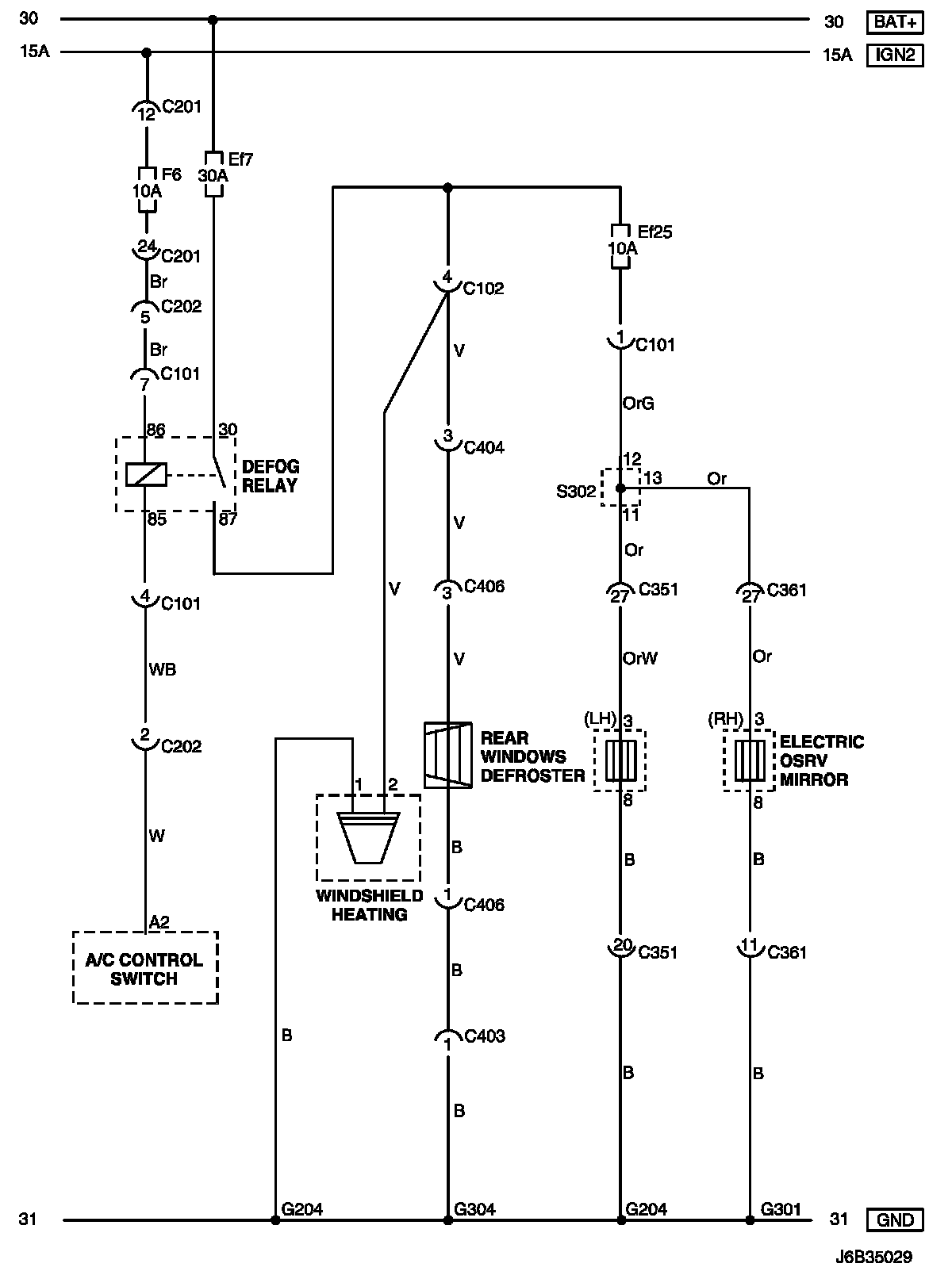Font/Rear Window Defroster and OSRV Mirror Heating System Circuit Wiring Diagram (For STATION WAGON Model):