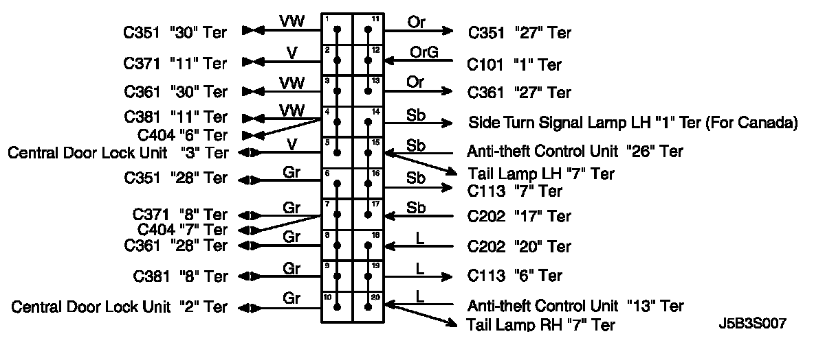 CONNECTOR IDENTIFICATION SYMBOL AND PIN NUMBER POSITION