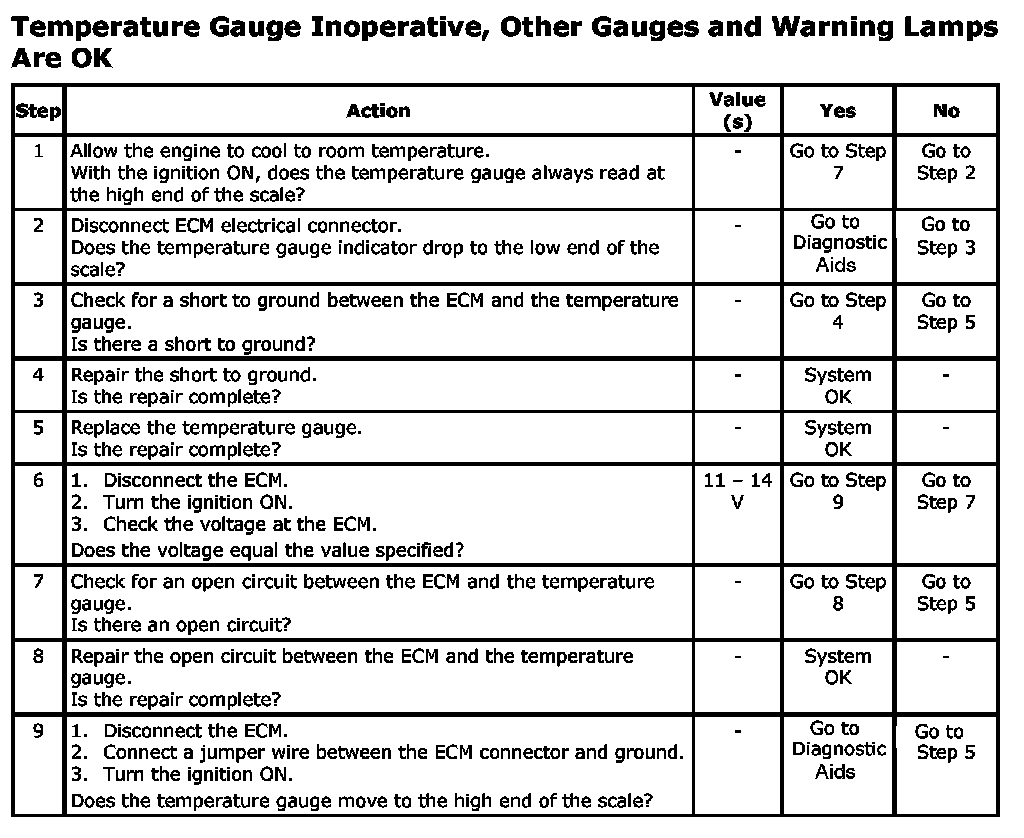 Temperature Sensor (Gauge): Testing and Inspection