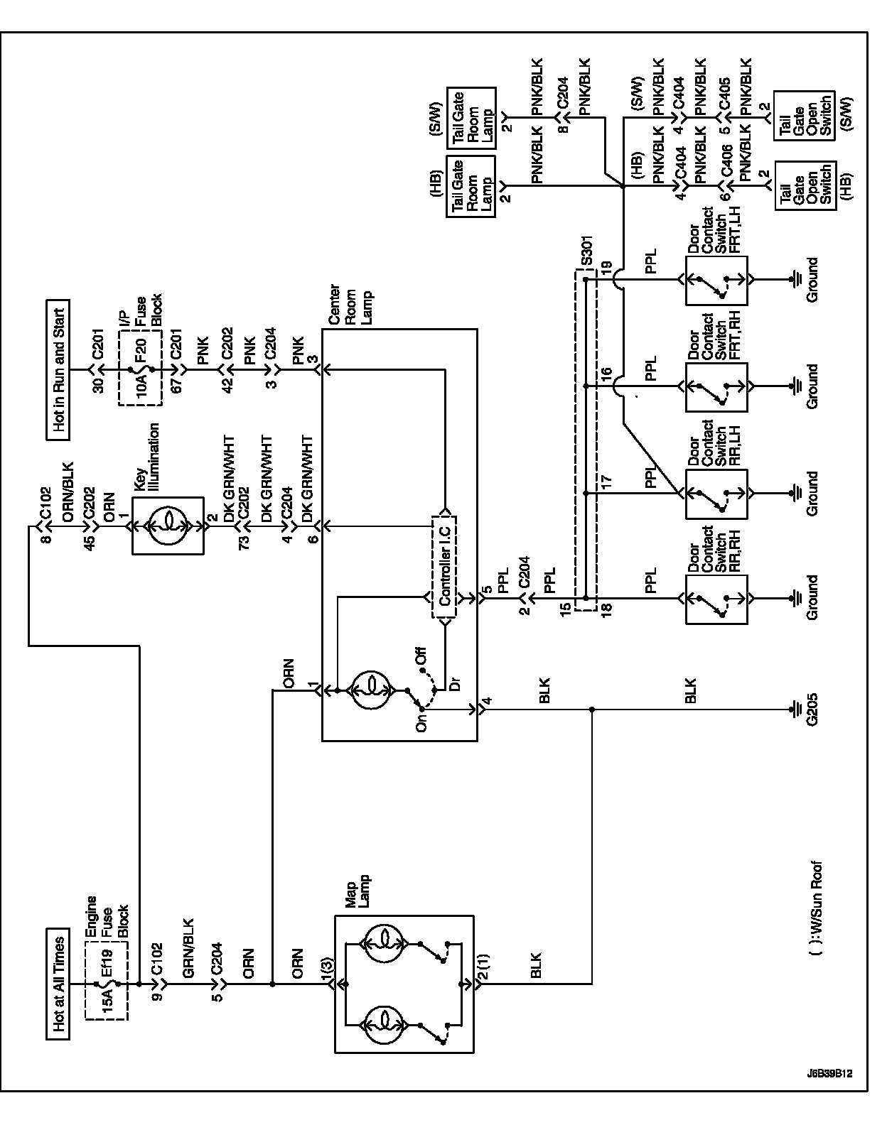 Interior Courtesy And Luggage Compartment Lamp Circuit Diagram: