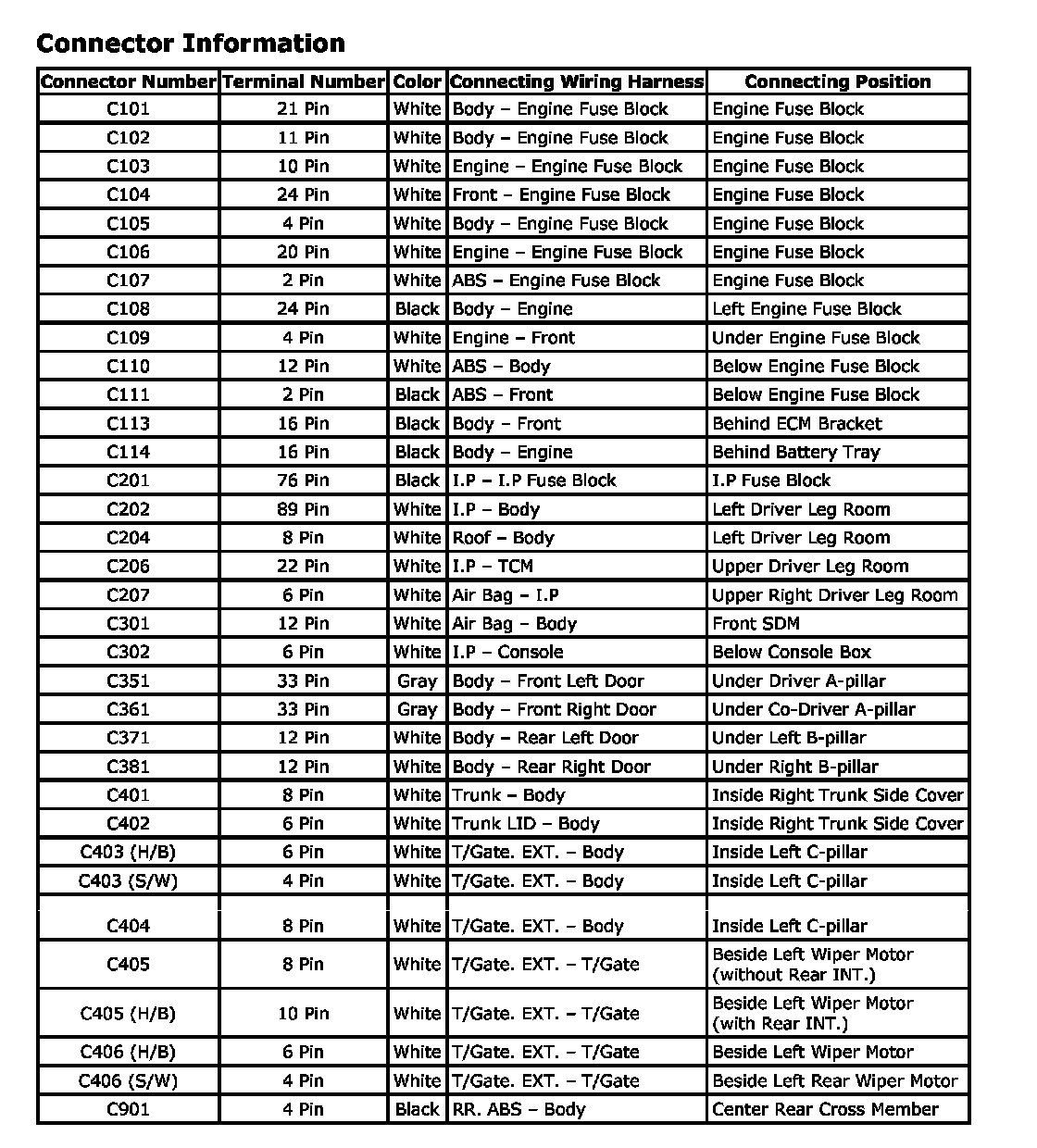 Connector Locations