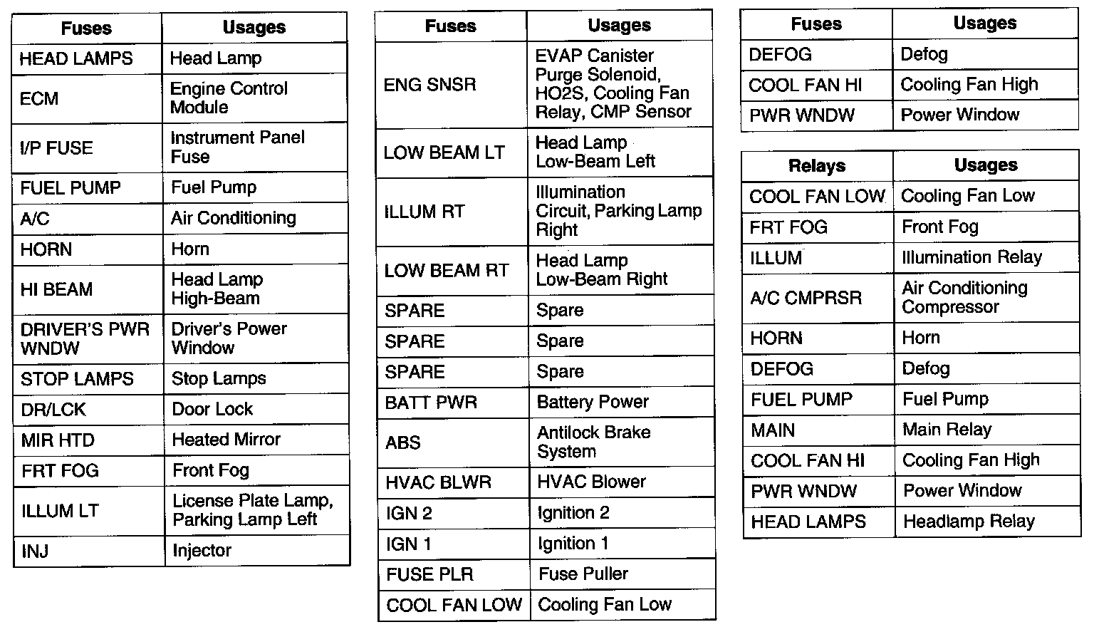 Fuse Details Engine Compartment