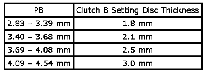 PB is 3.07 mm so, the setting disc (clutch plate of B set) thickness is 1.8 mm.