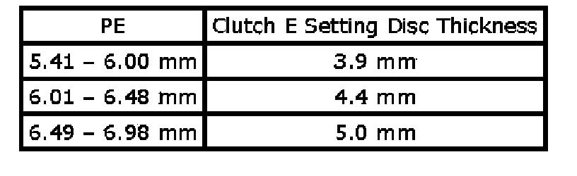 PE is 6.64 mm so, the setting disc (clutch plate of E set) thickness is 5.0 mm.