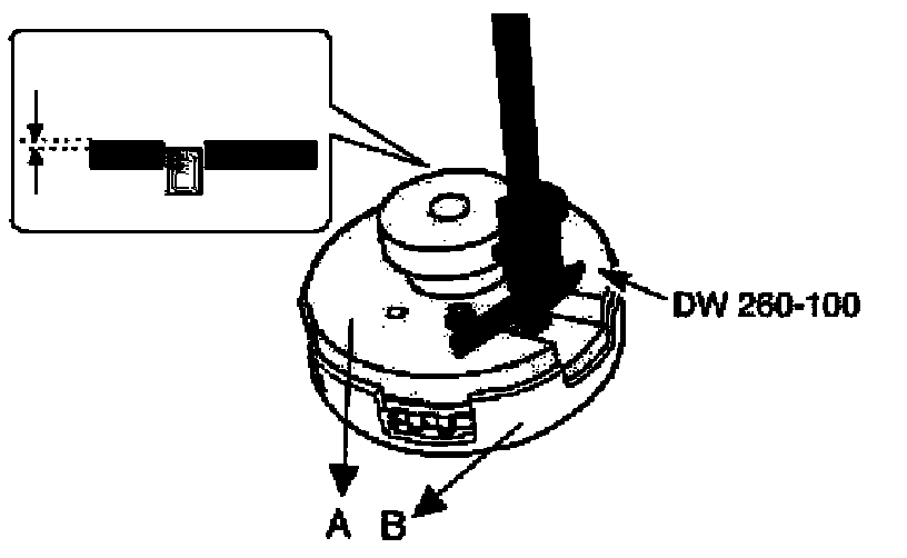 ^ Turning the knob of DW260-100, make sure that surface height of A (upper side tool) is same with surface height of B (lower side tool).