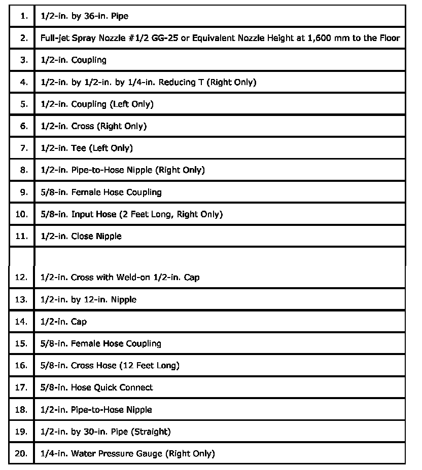 4. If the local water pressure does not allow the required water pressure of 155 kPa (22.5 psi), move both stands closer to the vehicle so that the water spray overlaps.