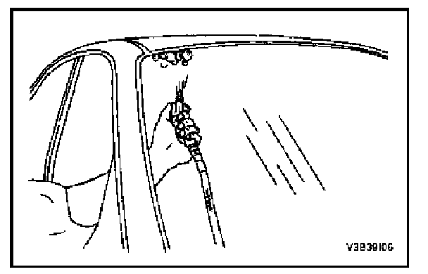 Waterleak DiagnosisThe repair of waterleaks in the body requires proper testing and diagnosis. Repair waterleaks by adjusting the misaligned parts and using the proper repair materials. First, determine what conditions cause the leak. For example, the leak may occur only when the vehicle is parked on an incline, or water may appear only in the spare tire compartment. Second, test the area for the source of the leak using the following testing methods. If the general leak area is found, determine the exact entry point of the leak by using a water hose or an air hose. If the general leak area is not obvious, use the watertest stands to determine the area of the leak. It may be necessary to remove some interior trim panels or some parts in order to locate the leaks.