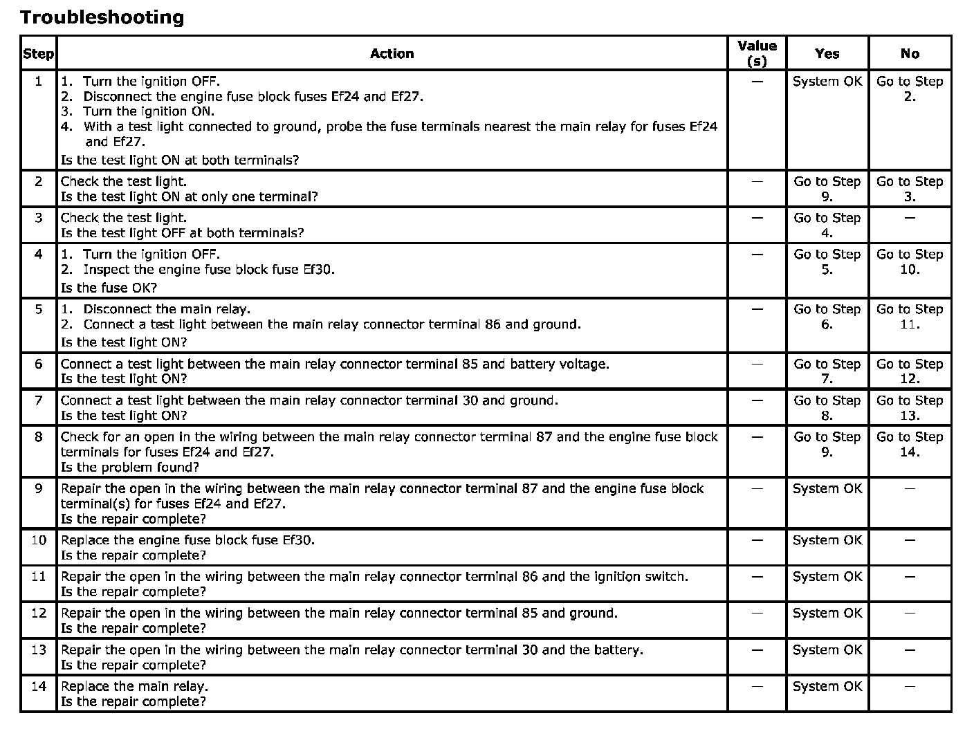 Main Relay (Computer/Fuel System): Testing and Inspection