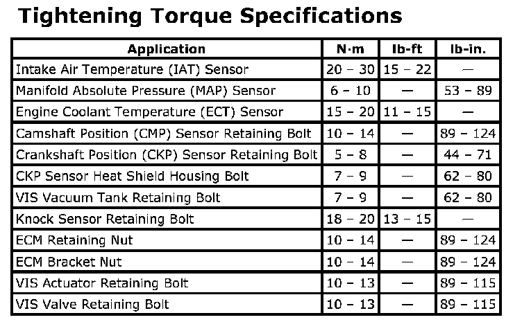 Tightening Torque Specifications: