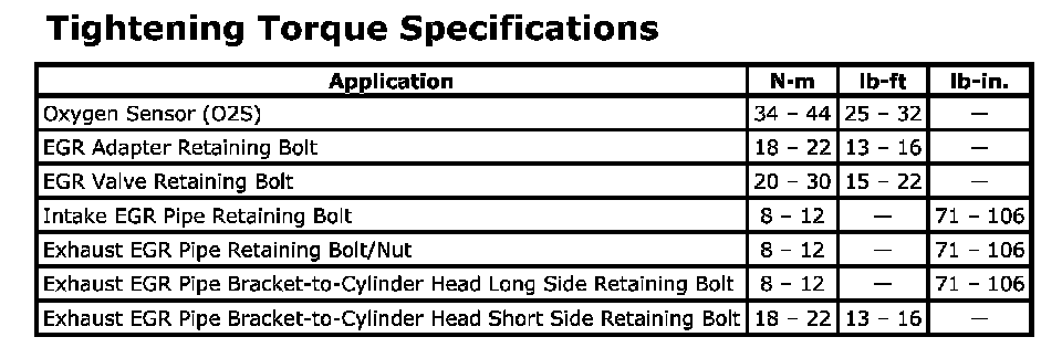 Exhaust Gas Recirculation: Specifications