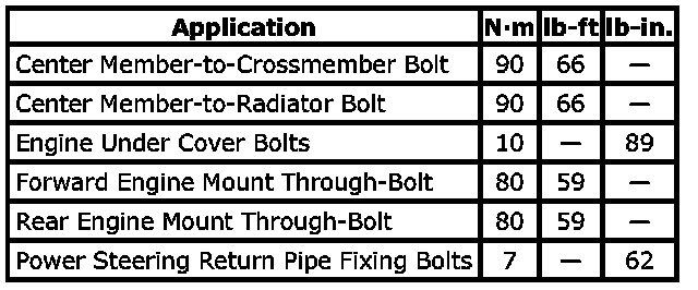 Tightening Torque Specifications: