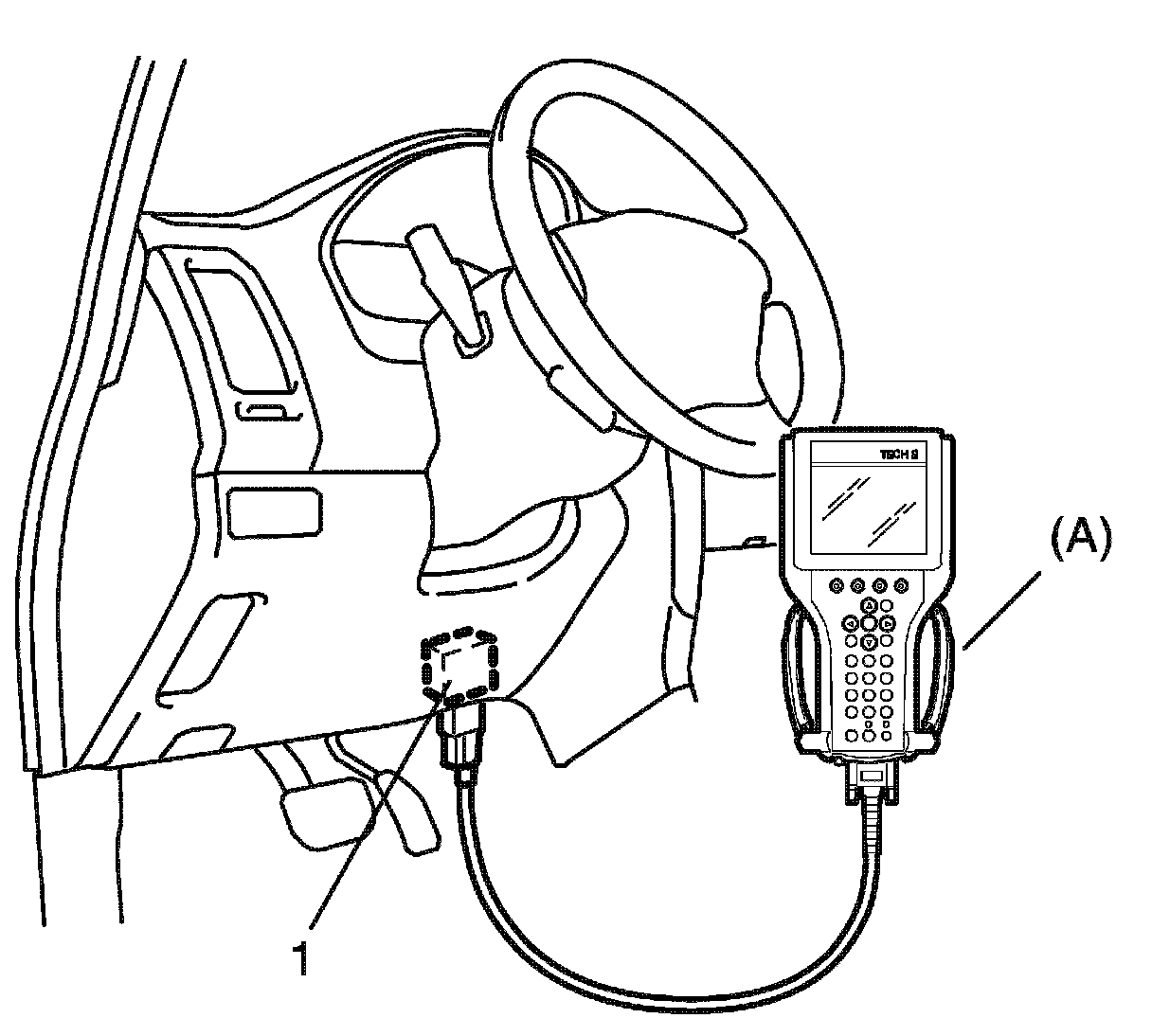 VIN Registration1. Connect SUZUKI scan tool to data link connector (DLC) (1) located on under side of instrument panel at drive s seat side.