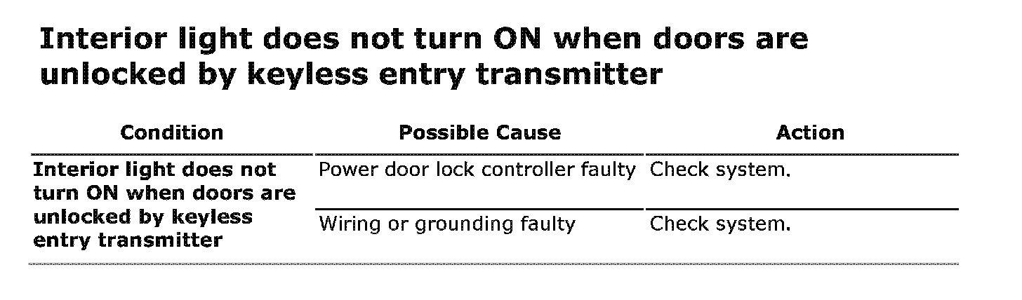 Interior Light Does Not Turn on When Doors Are Unlocked By Keyless Entry Transmitter
