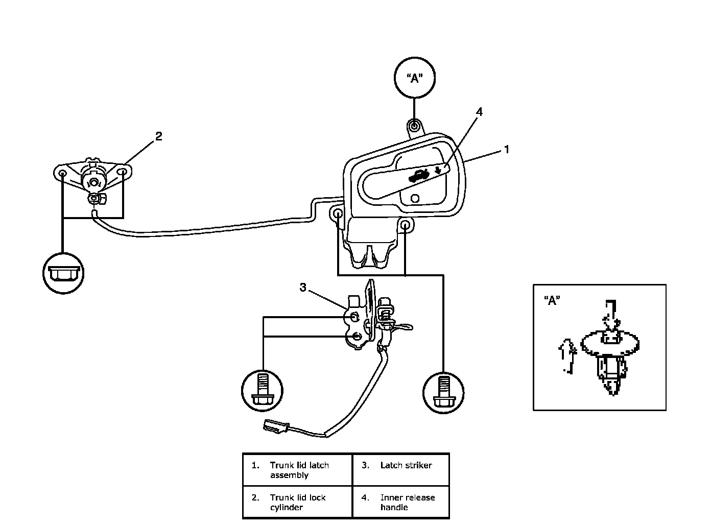Trunk Lid Lock Assembly (for Sedan Model) Components: