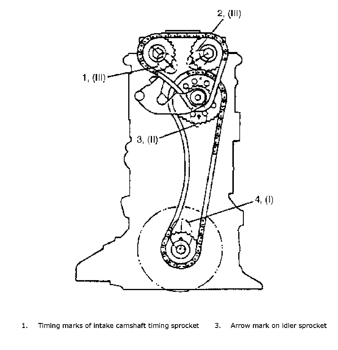 ^ Marks on sprockets (III) match with marks on cylinder head.