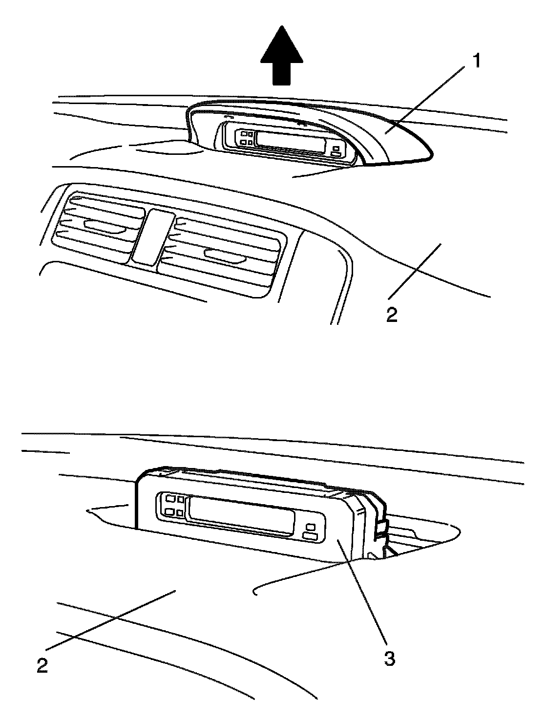 3. Remove information display (3) from instrument panel (2).