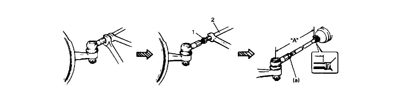 If steering angle is not correct, check if right and left tie rods are equal in length "A".