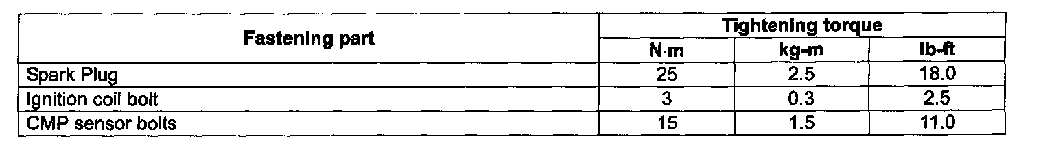 Tightening Torque Specifications: