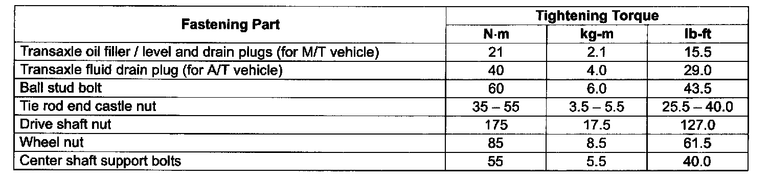 TIGHTENING TORQUE SPECIFICATIONS