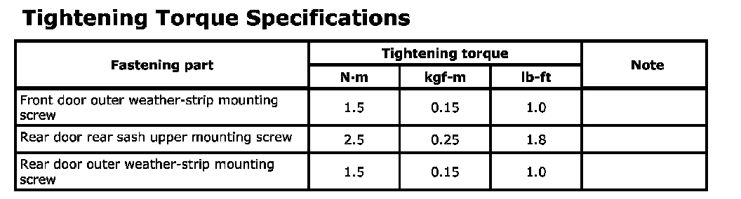 TIGHTENING TORQUE SPECIFICATIONSTightening Torque Specifications:
