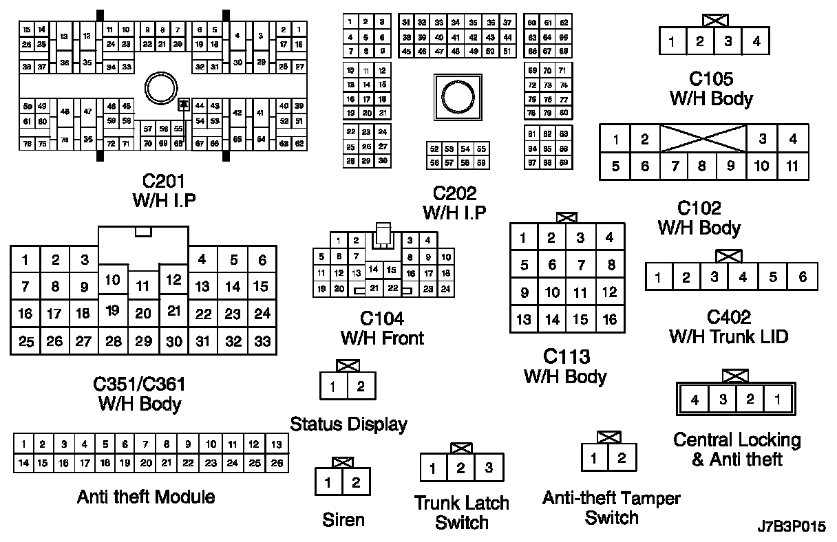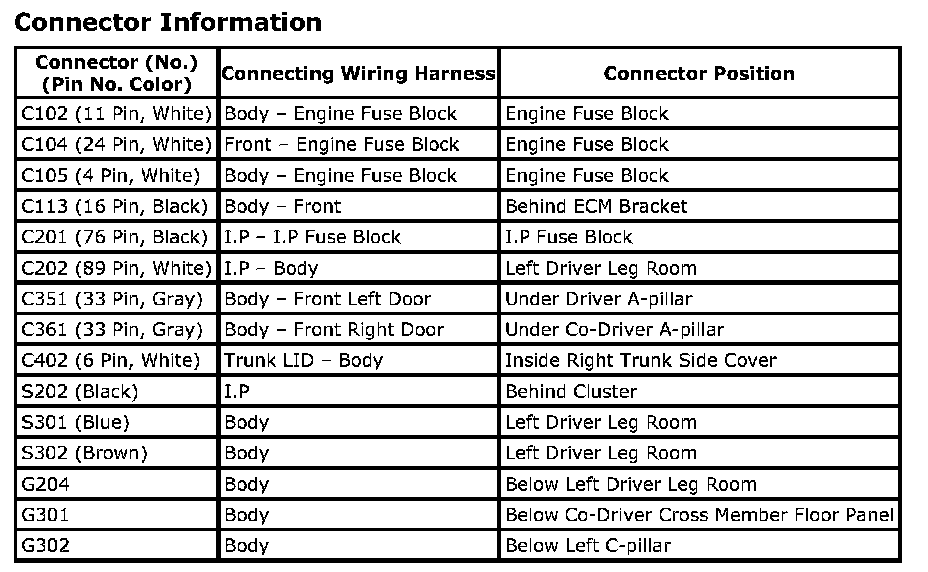 CONNECTOR IDENTIFICATION SYMBOL AND PIN NUMBER POSITION
