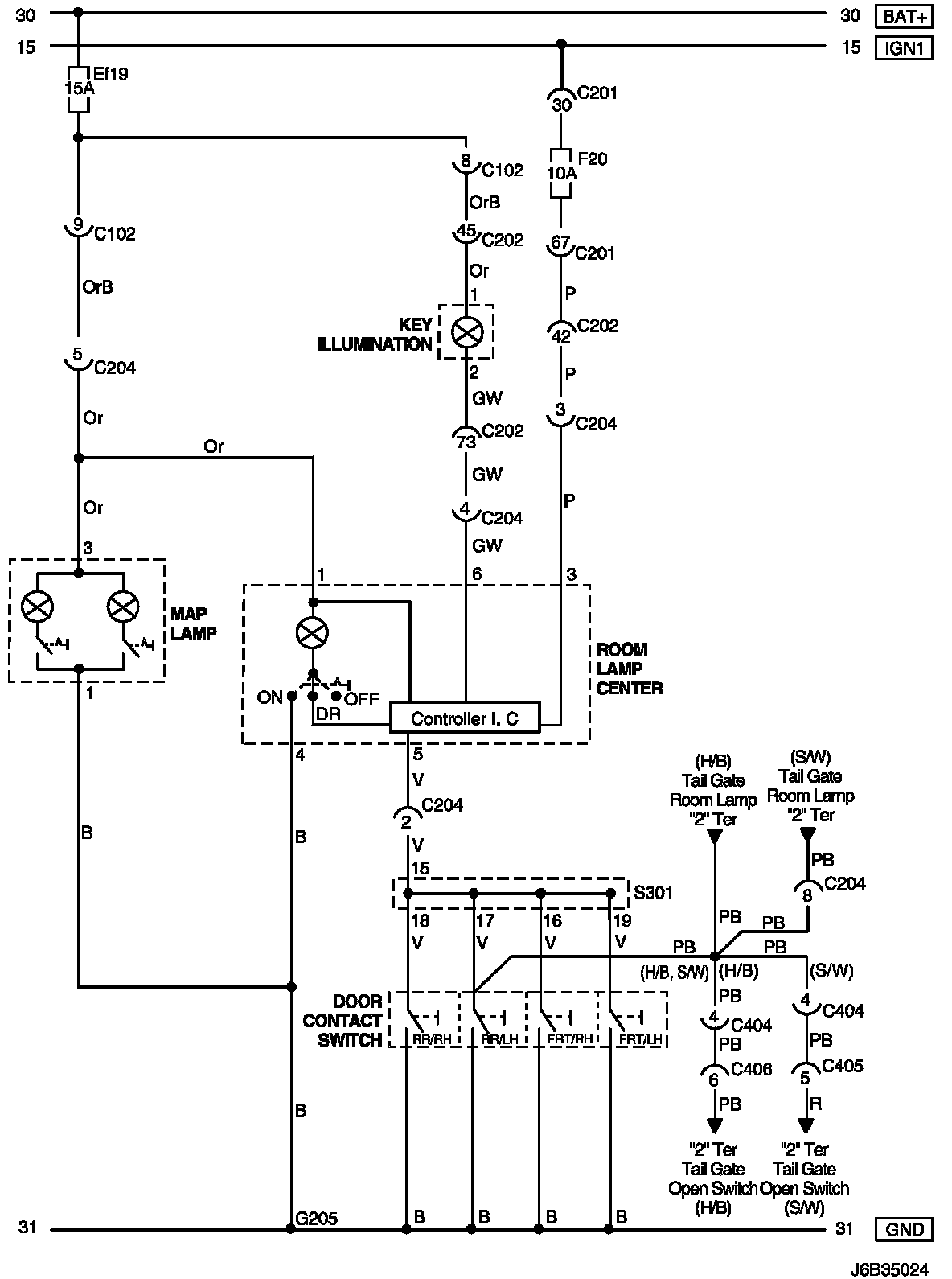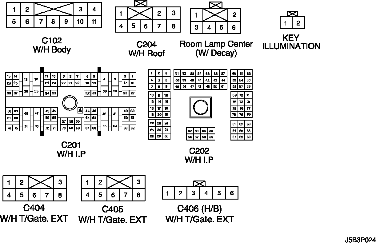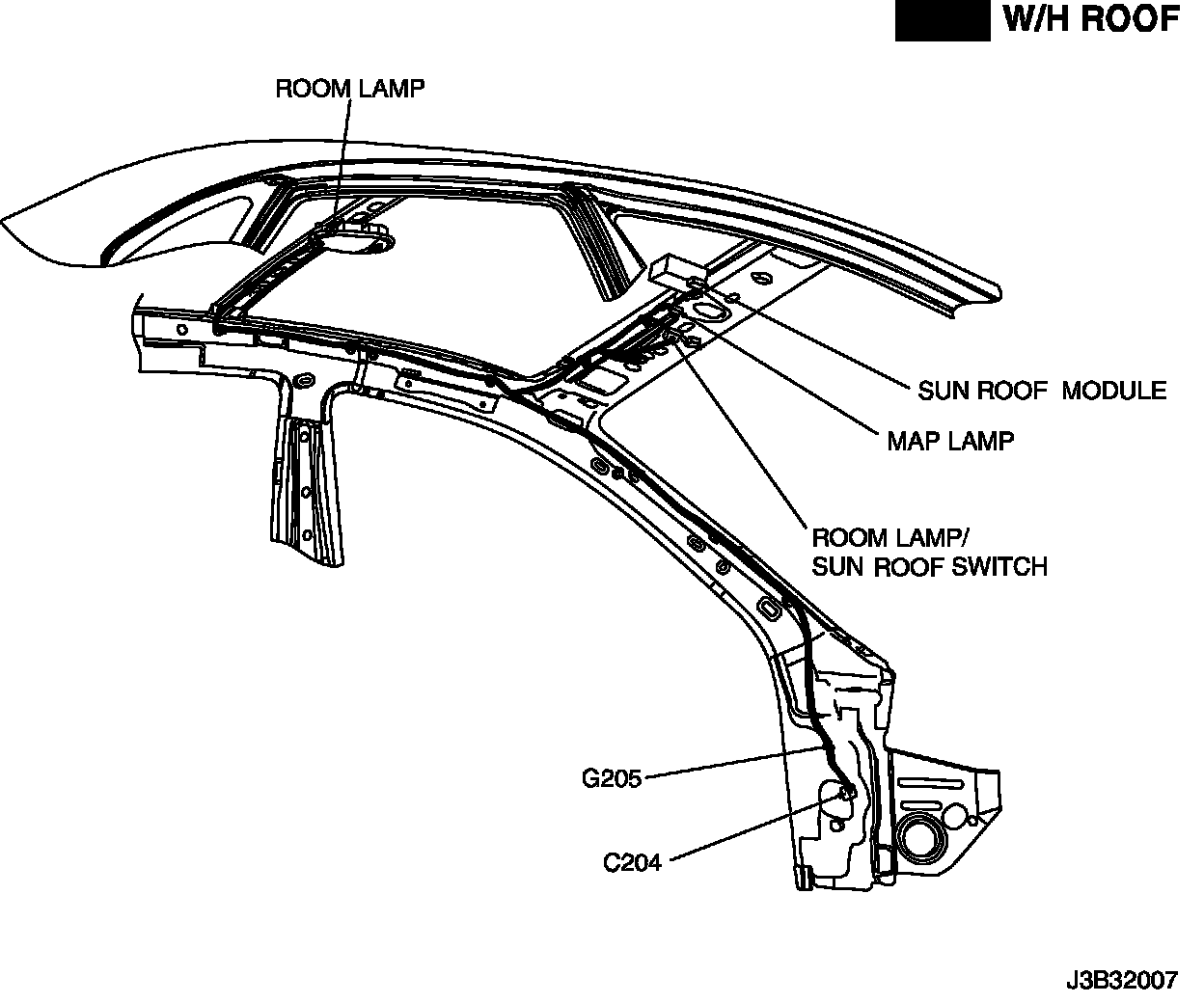 Lamp (Map and Room) and Key Illumination Circuit Wiring Diagram (With Sun Roof):