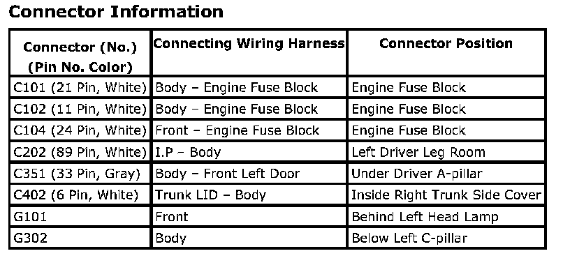 CONNECTOR INFORMATION