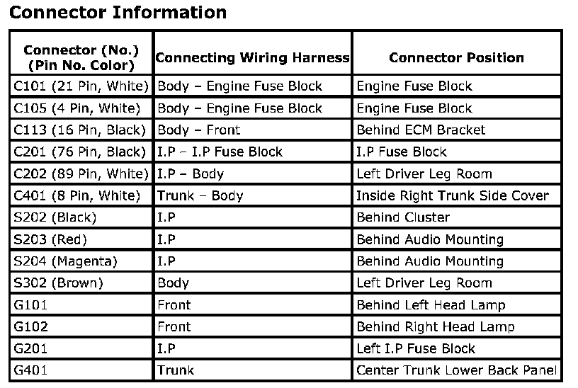 CONNECTOR IDENTIFICATION SYMBOL AND PIN NUMBER POSITION